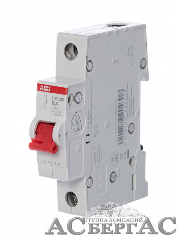 - Заменён на:SD201/16 Рубильник 1-полюсный модульный 16А (красный рычаг) ABB