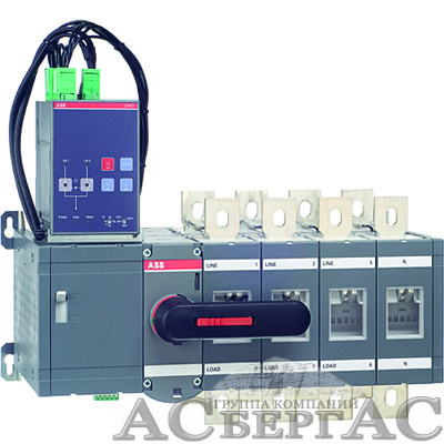 OTM1000E4CM230C Реверсивный рубильник 4-полюсный 1000А с моторным приводом 230В AC (с ручкой) ABB