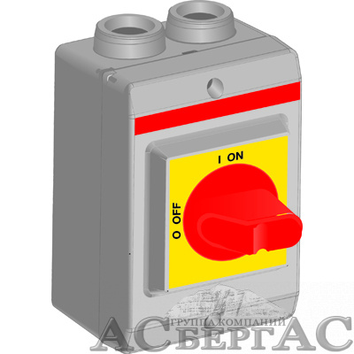 Рубильник в боксе OTP16KA3M1 до 16А 3х-полюсный, красно-желтая ручка, резьба 4xM20 ABB