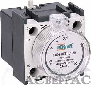Приставка выдержки времени с задержкой при включении 0.1-30 сек, доп.контакты 1НО+1НЗ, ПВ03-ВКЛ-0.1-30 DEKraft