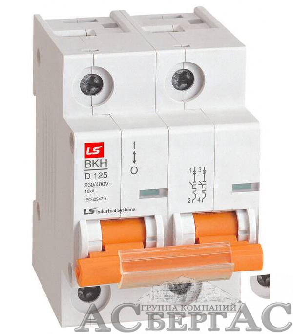 BKH Автоматический выключатель 2-полюсный, 63А, 10кА (хар-ка C) LSis