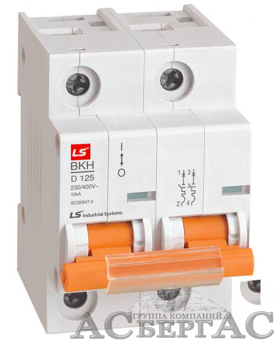 BKH Автоматический выключатель 2-полюсный, 125А, 10kА (хар-ка C) LSis
