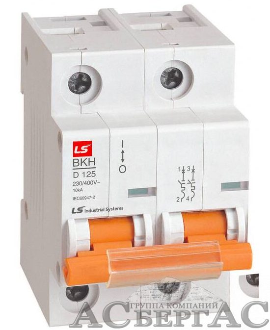 BKH Автоматический выключатель 2-полюсный, 125А, 10kА (хар-ка D) LSis