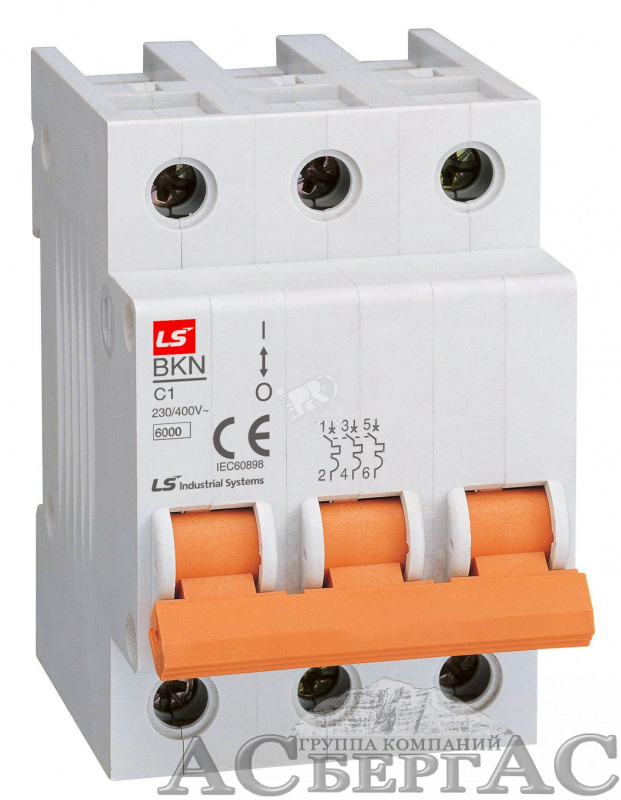 BKN Автоматический выключатель 3-полюсный, 6А, 6kА (хар-ка C) LSis