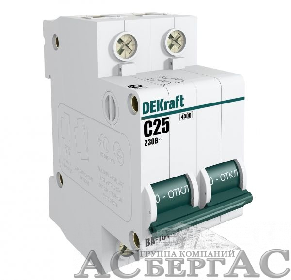 ВА-101 Автоматический выключатель 2-полюсный, 20А, 4.5kА (хар-ка C) DEKraft