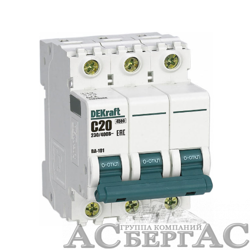 ВА-101 Автоматический выключатель 3-полюсный, 20А, 4.5kА (хар-ка С) DEKraft