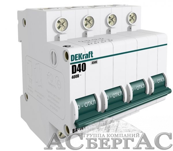 ВА-101 Автоматический выключатель 4-полюсный, 50А, 4.5kА (хар-ка C) DEKraft