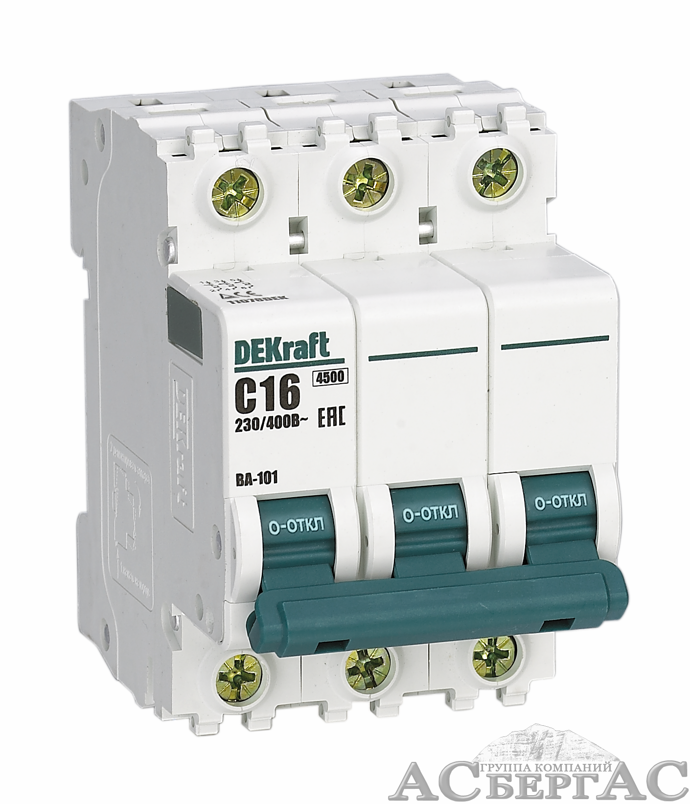 ВА-101 Автоматический выключатель 3-полюсный, 8А, 4.5kА (хар-ка D) DEKraft