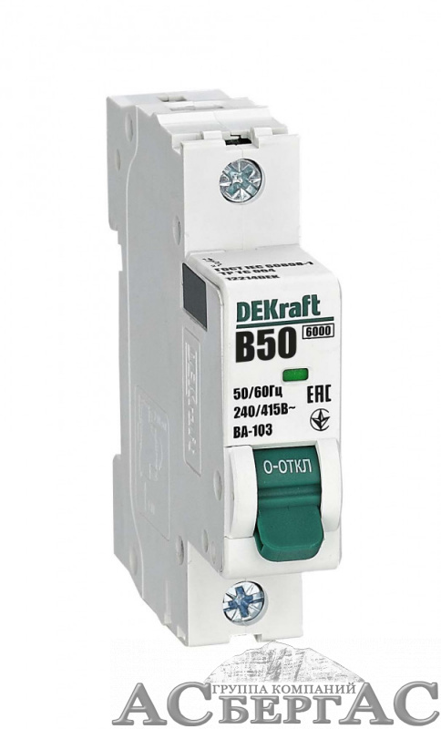 ВА-103 Автоматический выключатель 1-полюсный, 50А, 6kА (хар-ка B) DEKraft