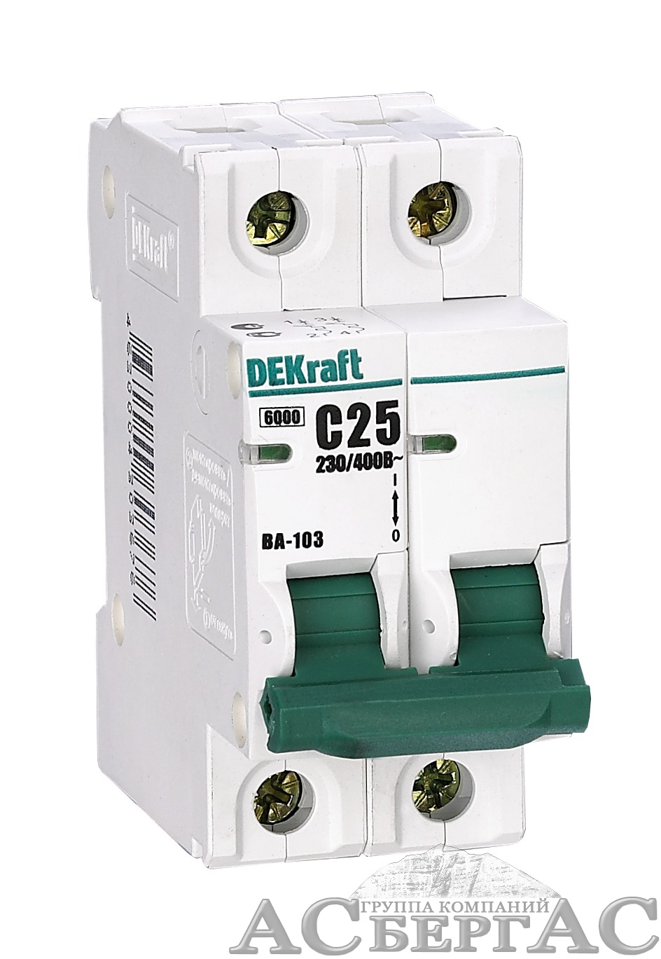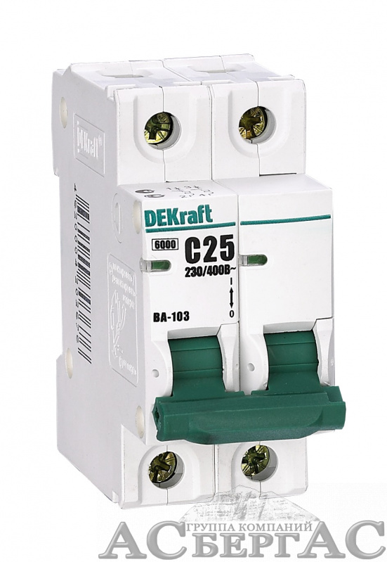ВА-103 Автоматический выключатель 2-полюсный, 20А, 6kА (хар-ка B) DEKraft