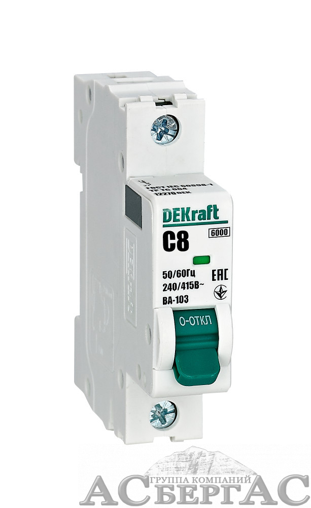 ВА-103 Автоматический выключатель 1-полюсный, 8А, 6kA (хар-ка C) DEKraft