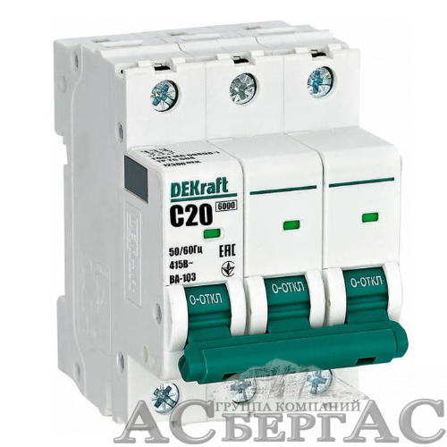 ВА-103 Автоматический выключатель 3-полюсный, 20А, 6kА (хар-ка С) DEKraft