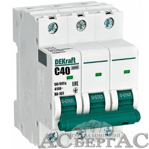 ВА-103M Автоматический выключатель 3-полюсный, 40А, 6kА (хар-ка C) DEKraft