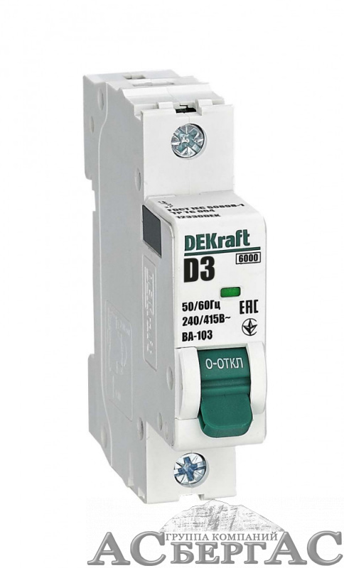 ВА-103 Автоматический выключатель 1-полюсный, 3А, 6kA (хар-ка D) DEKraft