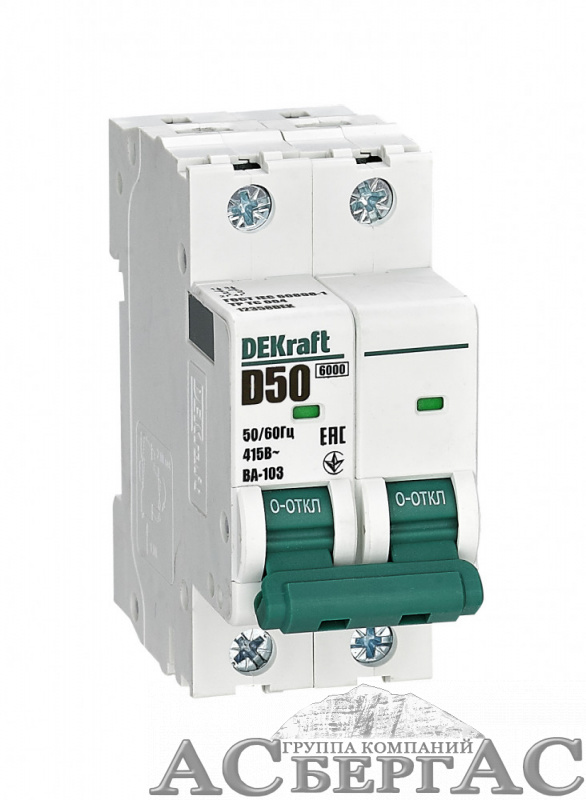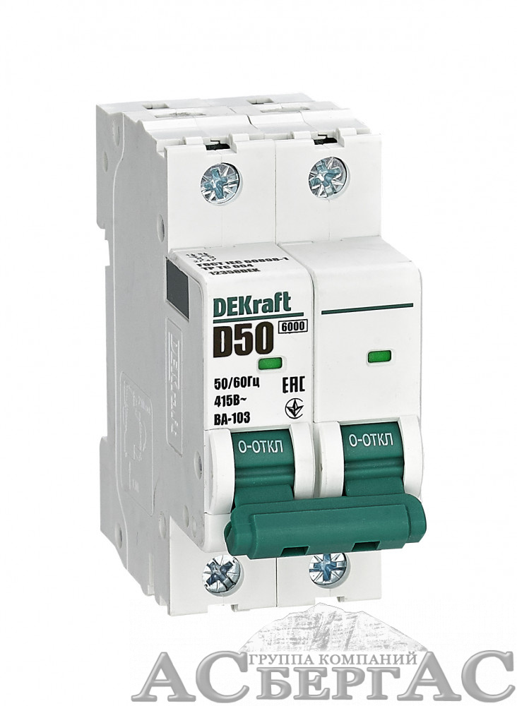 ВА-103 Автоматический выключатель 2-полюсный, 50А, 6kA (хар-ка D) DEKraft