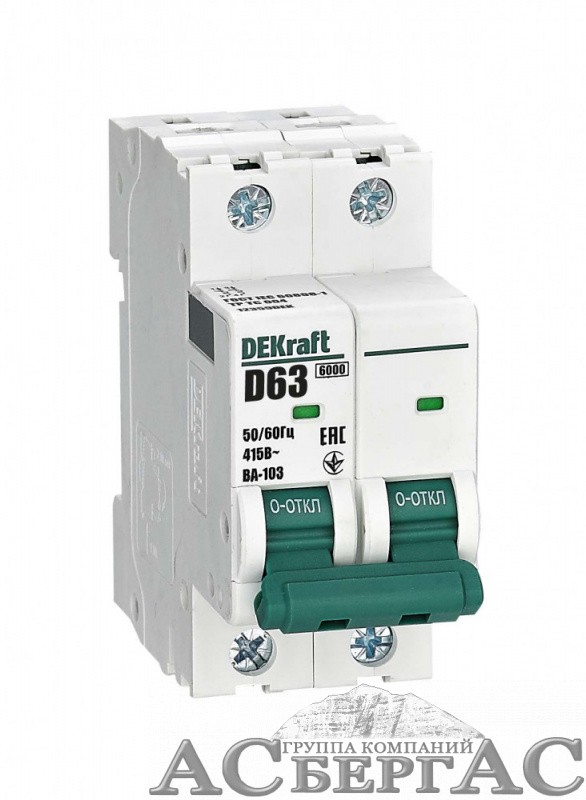ВА-103 Автоматический выключатель 2-полюсный, 63А, 6kA (хар-ка D) DEKraft