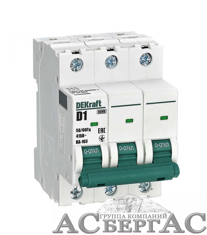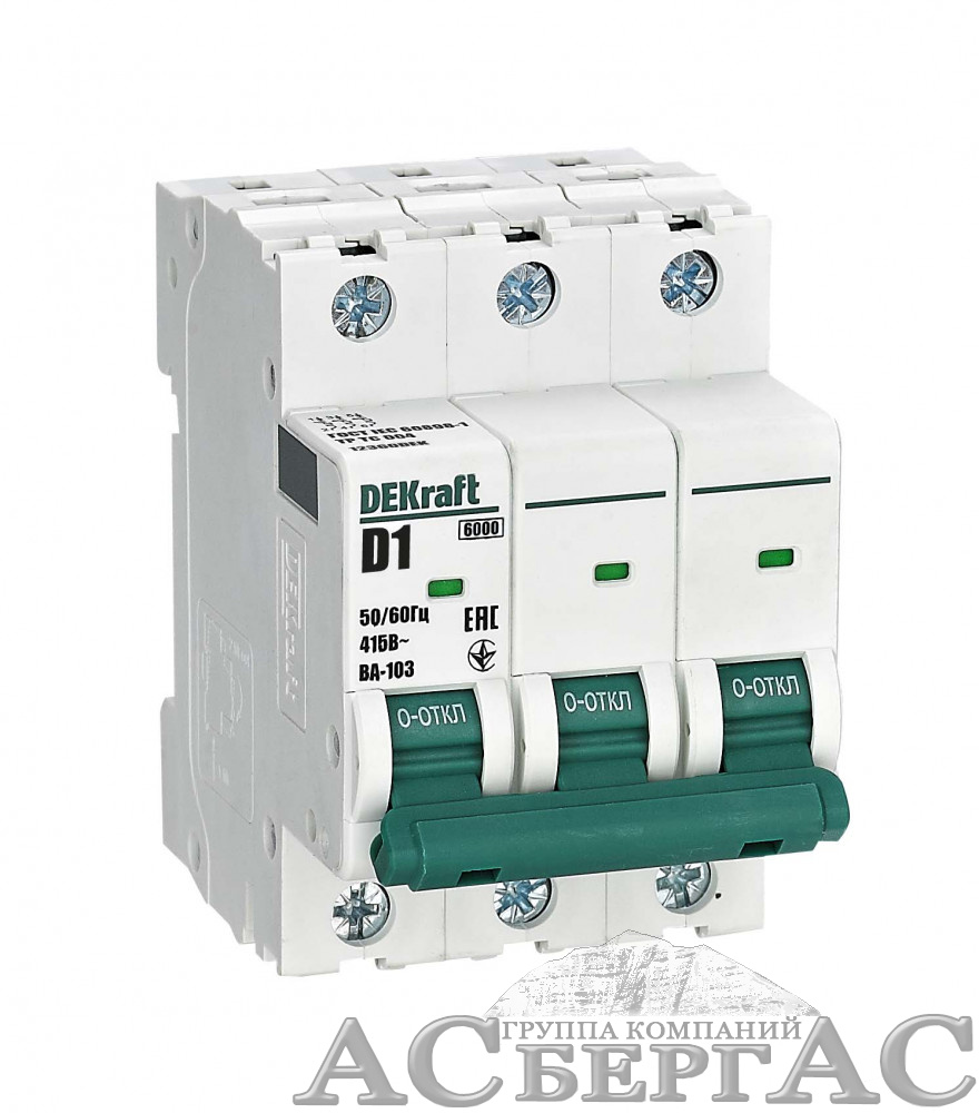 ВА-103 Автоматический выключатель 3-полюсный, 1А, 6kA (хар-ка D) DEKraft