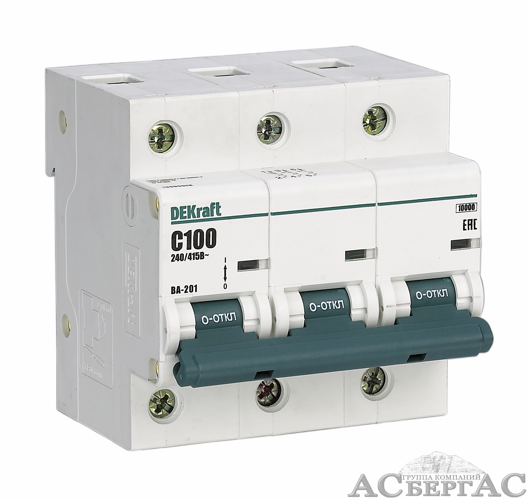 ВА-201 Автоматический выключатель 3-полюсный, 63А, 10kА (хар-ка С) DEKraft