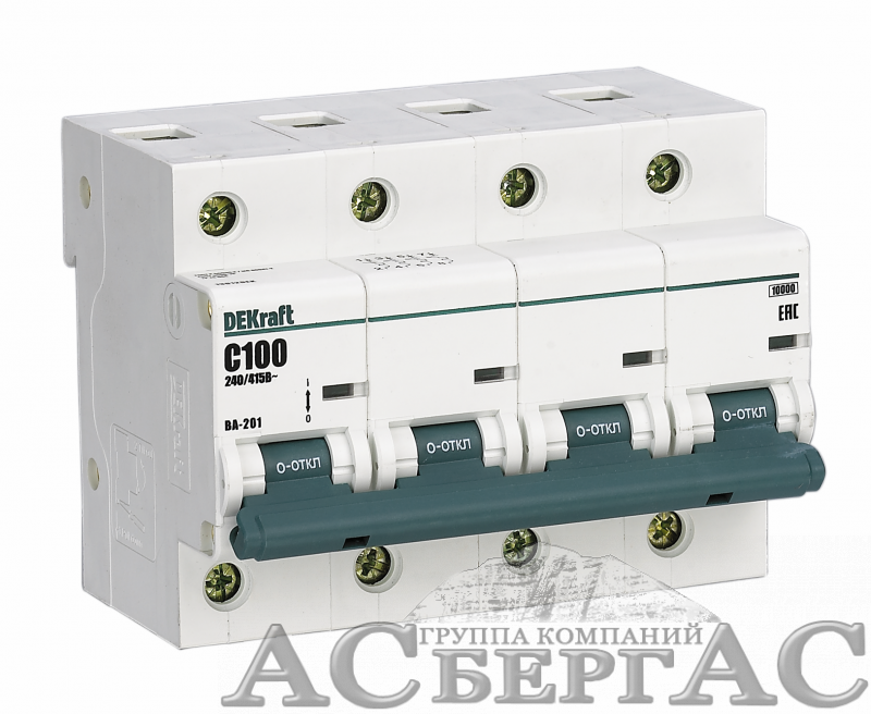 ВА-201 Автоматический выключатель 4-полюсный, 63А, 10kA (хар-ка D) DEKraft
