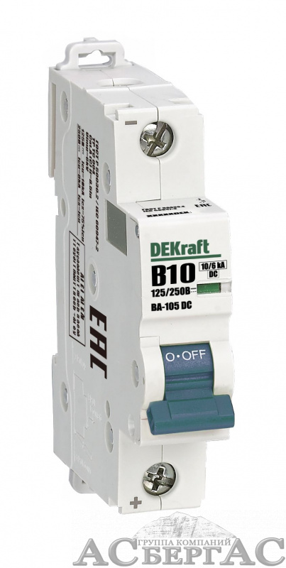 ВА-105 Автоматический выключатель 1-полюсный, 10А, 10kA, DC (хар-ка B) DEKraft