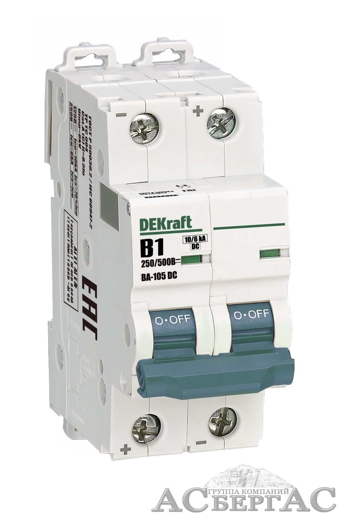 ВА-105 Автоматический выключатель 2-полюсный, 1А, 10kA, DC (хар-ка B) DEKraft