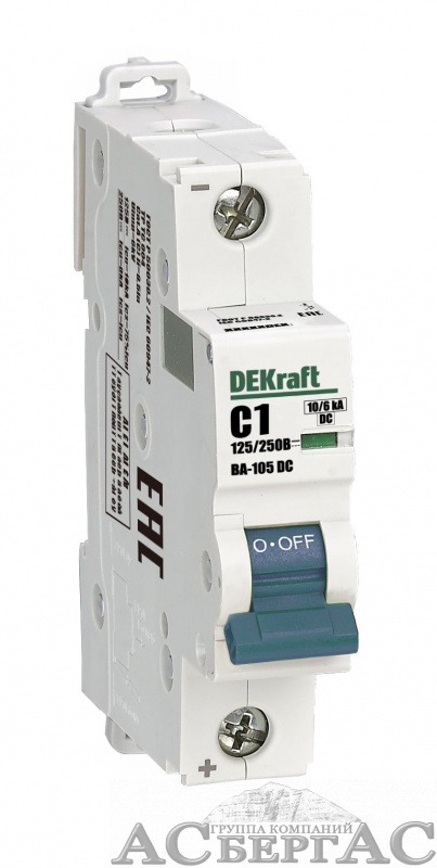 ВА-105 Автоматический выключатель 1-полюсный, 1А, 10kA, DC (хар-ка C) DEKraft