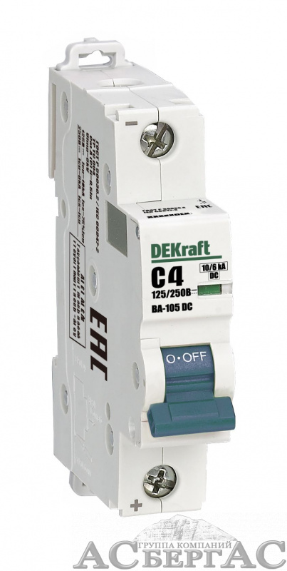 ВА-105 Автоматический выключатель 1-полюсный, 4А, 10kA, DC (хар-ка C) DEKraft