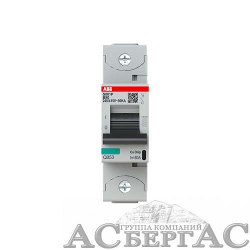 S801P B80 Автоматический выключатель 1-полюсный, 80А, 50kA (хар-ка B) ABB
