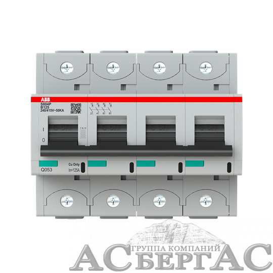 S804P B125 Автоматический выключатель 4-полюсный, 125A, 50kA (хар-ка B) ABB