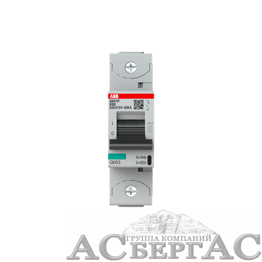 S801P K80 Автоматический выключатель 1-полюсный, 80A, 50kA (хар-ка D) ABB
