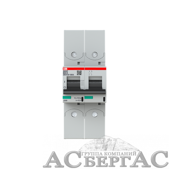 S802P B80 R Автоматический выключатель, 2-полюсный, 80А, 50kA, с кольцевой клеммой (хар-ка B) ABB