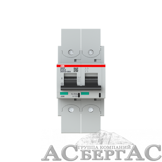 S802P B125 R Автоматический выключатель, 2-полюсный, 125А, 50kA, с кольцевой клеммой (хар-ка B) ABB
