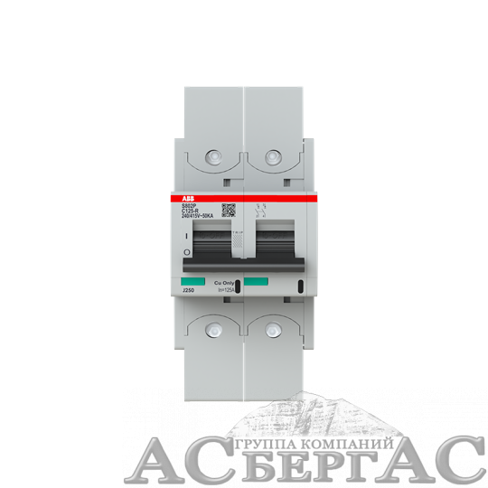 S802P C125 R Автоматический выключатель, 2-полюсный, 125А, 50kA, с кольцевой клеммой (хар-ка C) ABB