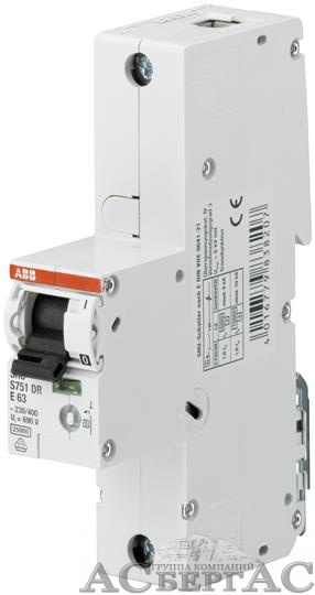 S751DR-E25 Автоматический выключатель, селективный, 1-полюсный, 25А, 25kA (хар-ка E) ABB
