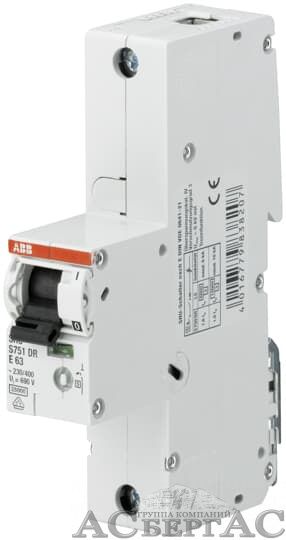 S751DR-K16 Автоматический выключатель, селективный, 1-полюсный, 16А, 25kA (хар-ка K) ABB