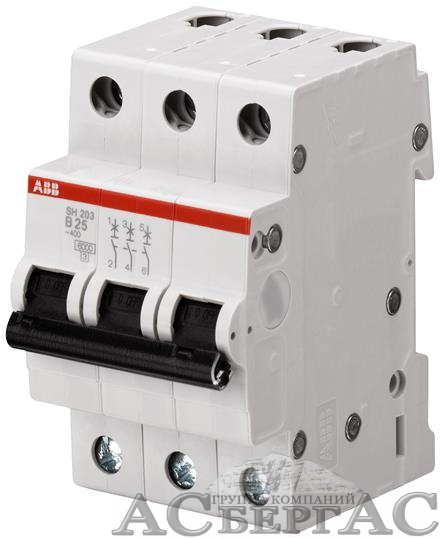 SH203 C2 Автоматический выключатель 3-полюсный, 2А, 6kA (хар-ка C) ABB