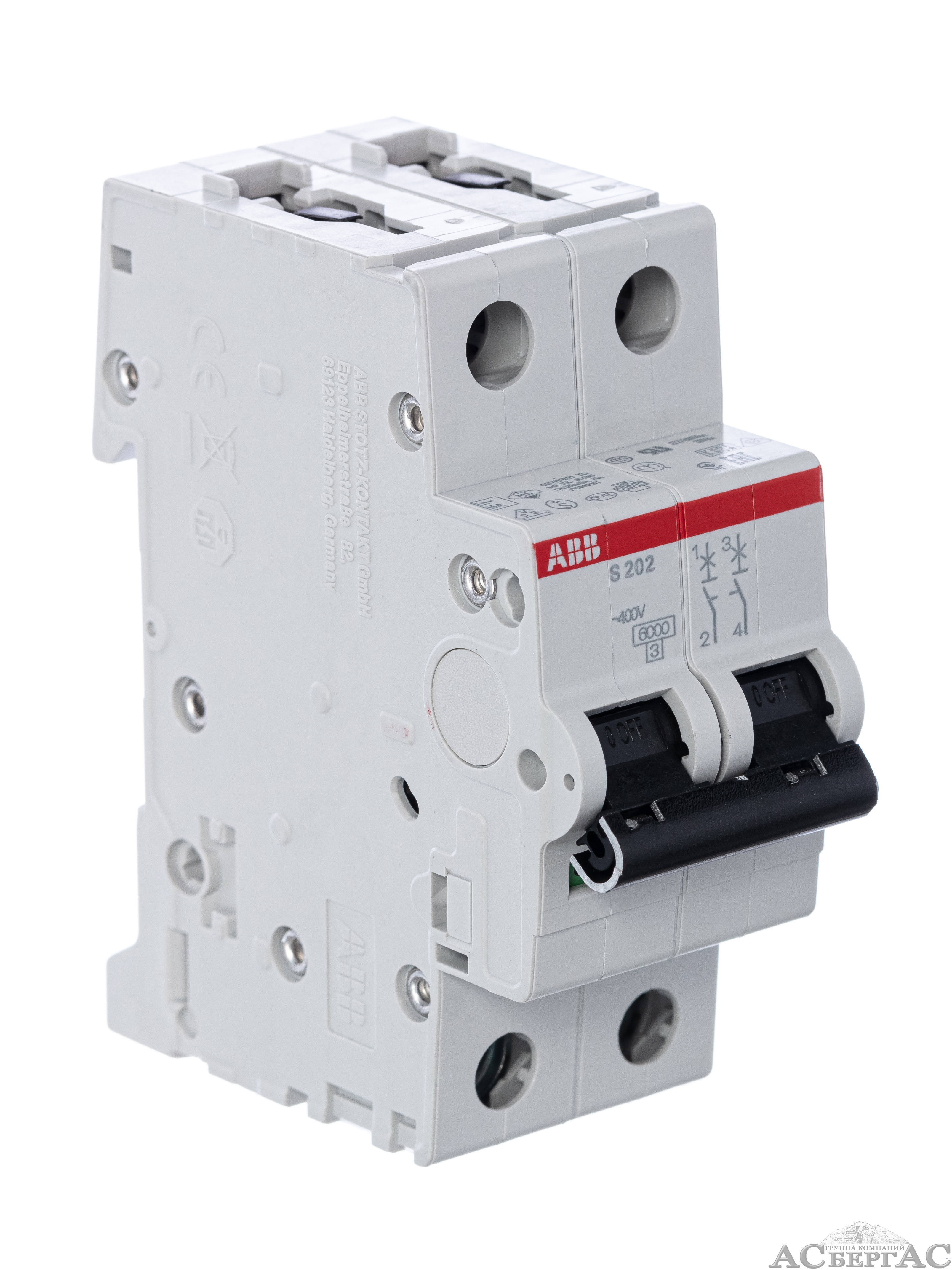 S202 D50 Автоматический выключатель 2-полюсный, 50А, 6кА (хар-ка D) ABB