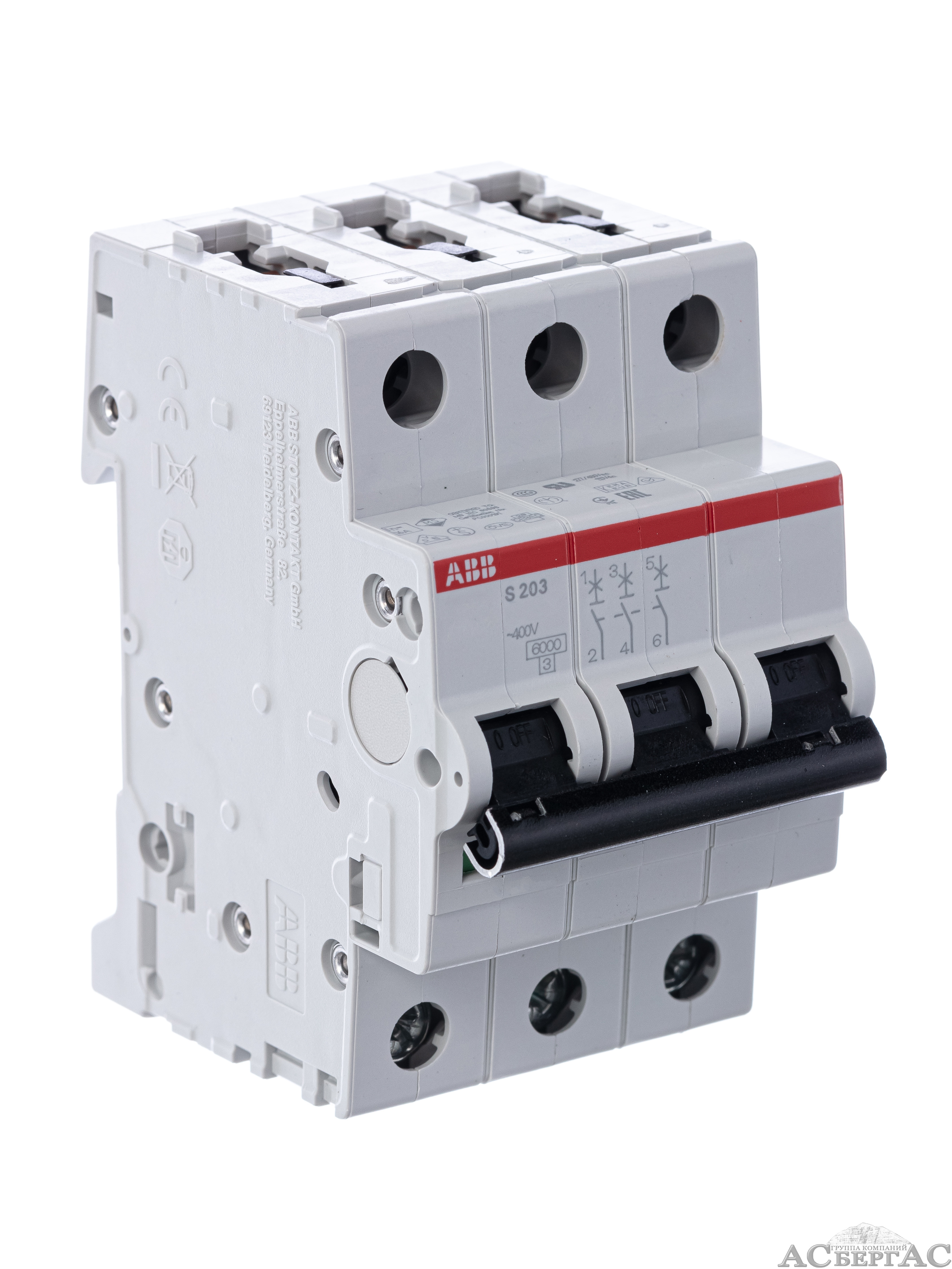 S203 D2 Автоматический выключатель 3-полюсный, 2А, 6кА (хар-ка D) ABB