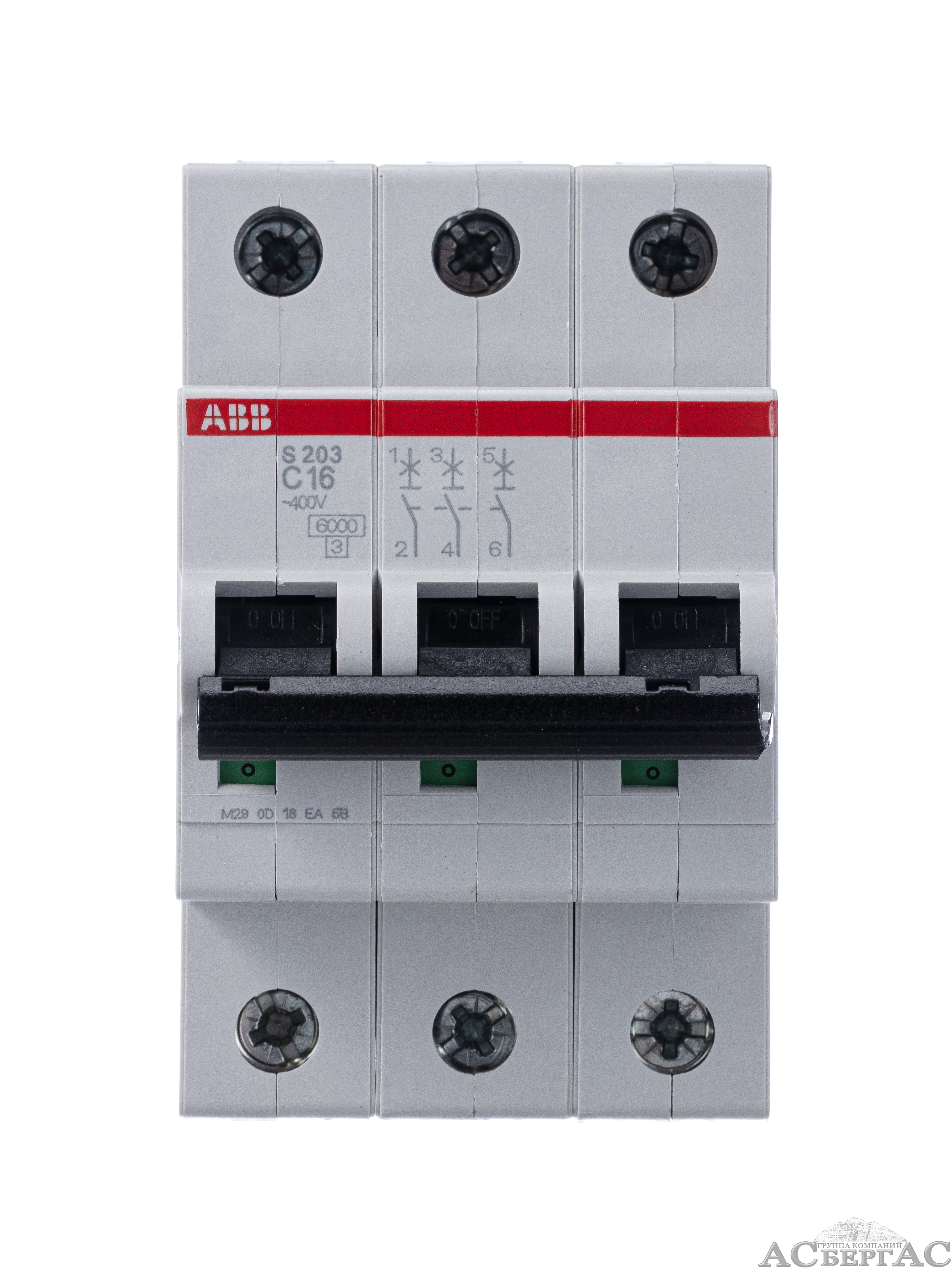 S203 C16 Автоматический выключатель 3-полюсный, 16А, 6кА (хар-ка C) ABB