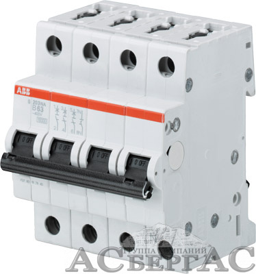 S203 B50NA Автоматический выключатель 3P+N, 50А, 6кА (хар-ка B) ABB