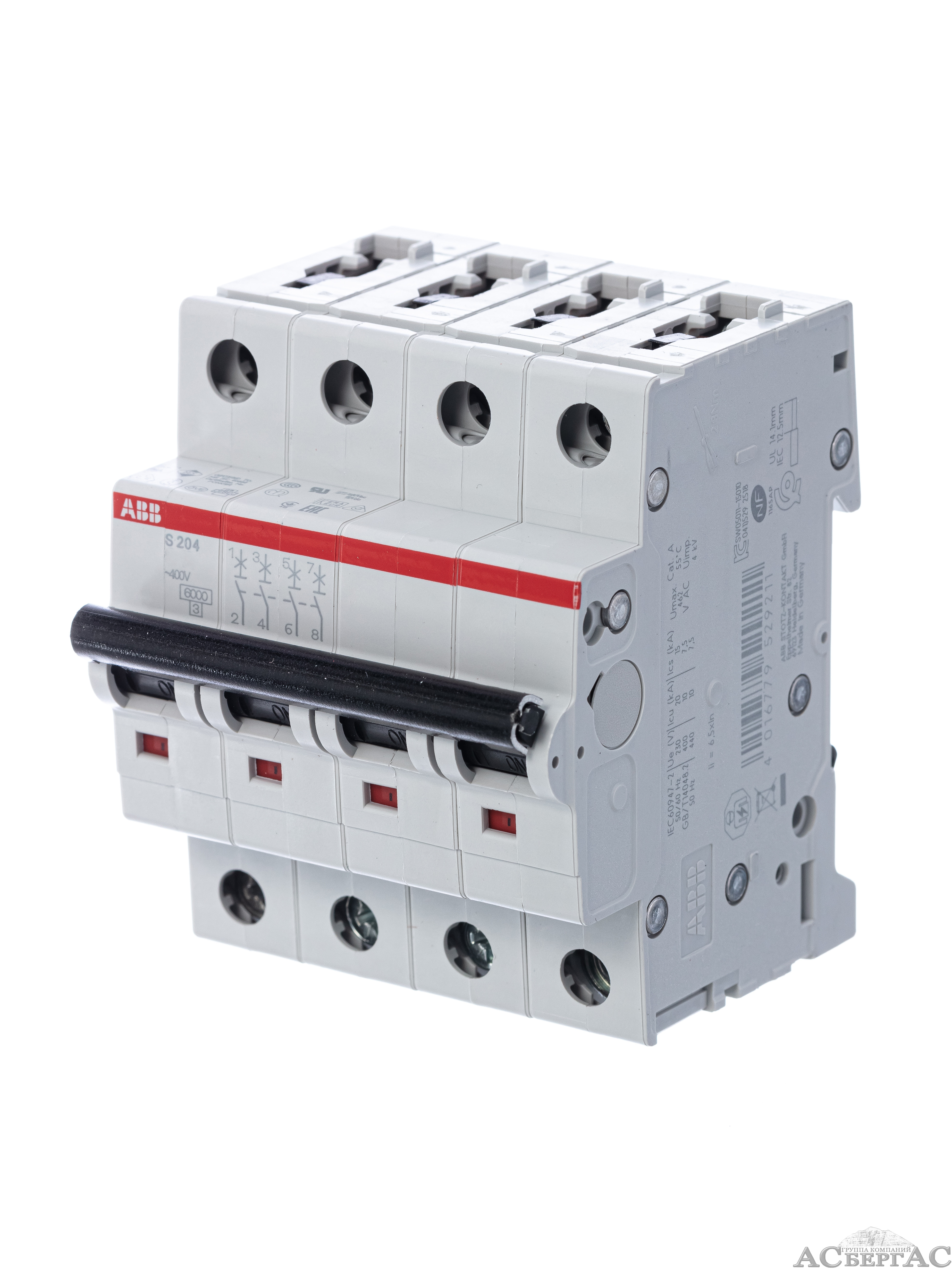 S204 B100 Автоматический выключатель 4-полюсный, 100А, 6kA (хар-ка B) ABB