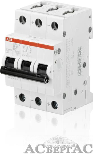 S203M C2UC Автоматический выключатель 3-х полюсный, 2А, 10кА, DC (хар-ка C) ABB