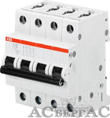 S204M D10 Автоматический выключатель 4-полюсный, 10А, 10kA (хар-ка D) ABB