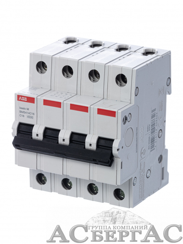 BMS414C16 Автоматический выключатель 4-полюсный, 16А, 4,5kA (хар-ка C) ABB