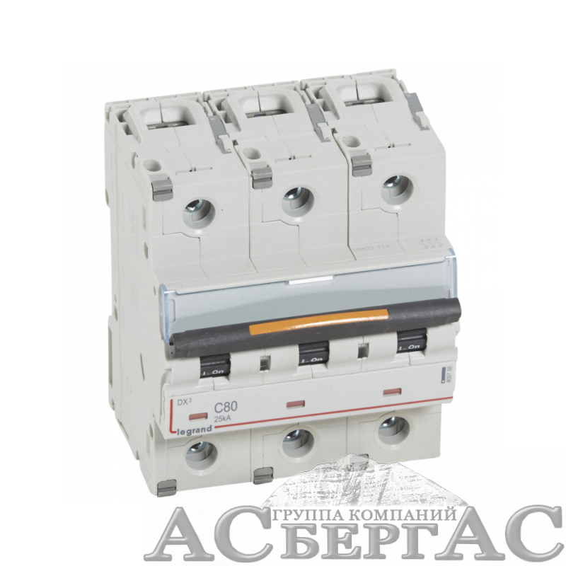 DX3 Автоматический выключатель 3-полюсный 80A 25kA (хар-ка C) Legrand