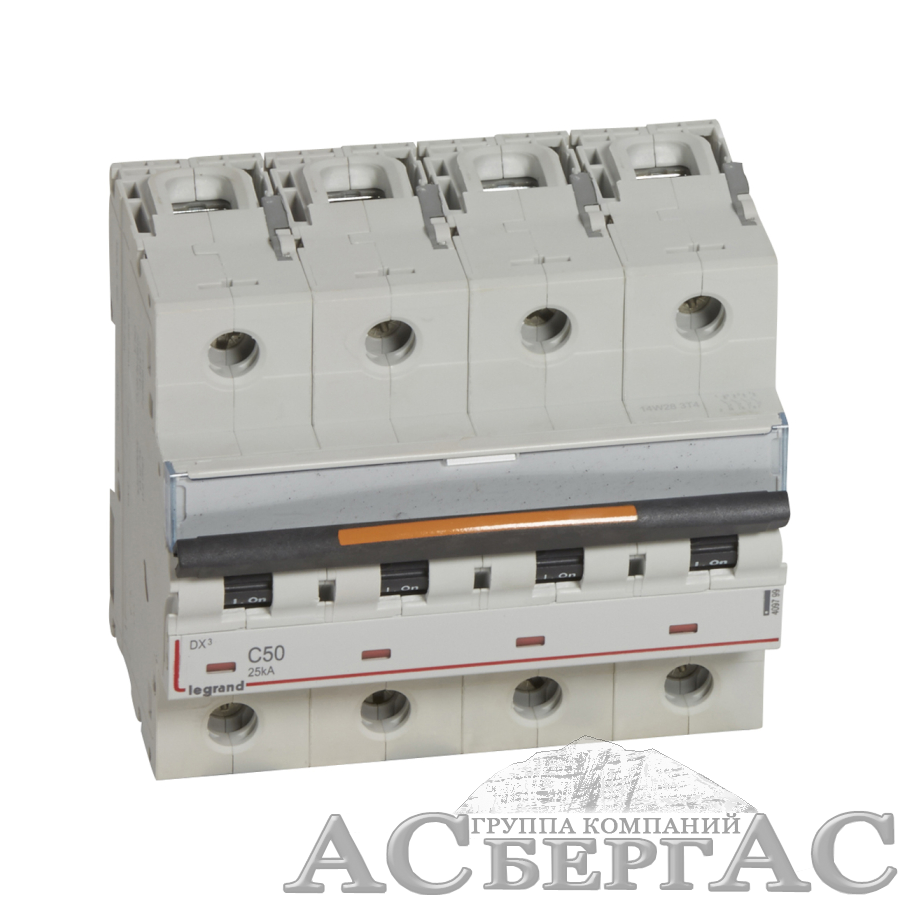 DX3 Автоматический выключатель 4-полюсный 50A 25kA (хар-ка C) Legrand