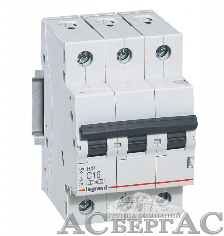 RX3 Автоматический выключатель 3-полюсный 16A 4,5kА (хар-ка С) Legrand