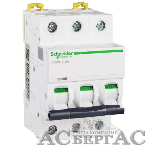 iC65N 3P 2А Автоматический выключатель 3-полюсный, 2А, 6кА (хар-ка C) Schneider Electric
