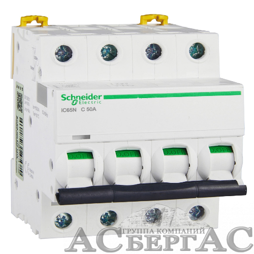 iC65N 4P 50А Автоматический выключатель 4-полюсный, 50А, 6кА (хар-ка C) Schneider Electric