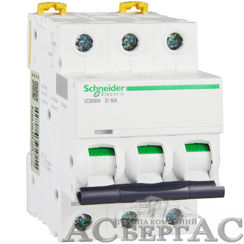 iC65N 3P 6A Автоматический выключатель 3-полюсный, 6А, 6кА (хар-ка D) Schneider Electric